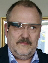 Hier seht ihr mich mit der Datenbrille Google Glass die ich ausprobieren durfte. Leider ist sie ihn Deutschland nicht so erhältlich.